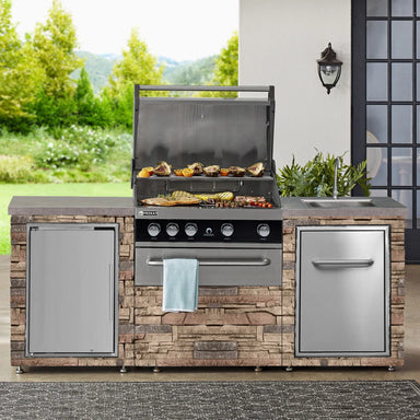 Features Get cooking with the Prokan Pro Elite European ledge stacked stone island grill. This fully loaded, outdoor kitchen and grill make it eas...